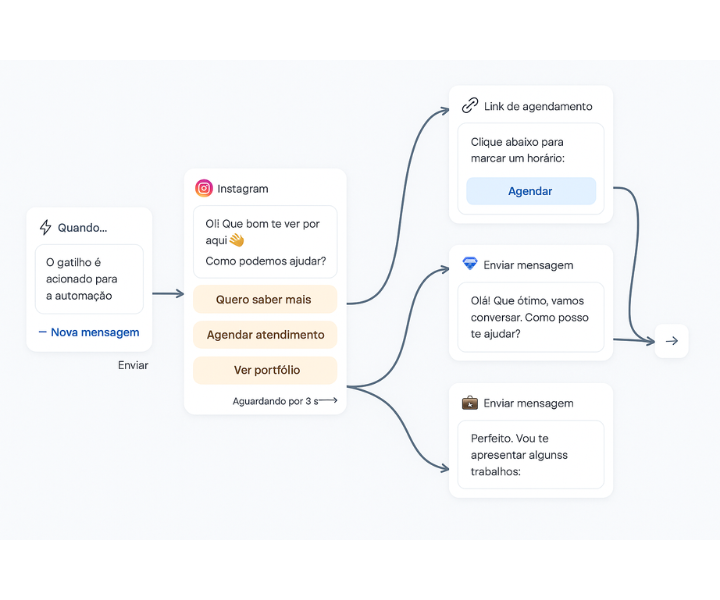 Com ela, sua marca ganha presença ativa 24 horas por dia, mesmo quando você não está online. Mas não se trata de “robôs frios”. Aqui, cada fluxo é pensado para ser humano, natural e estratégico, mantendo a essência da sua comunicação em cada mensagem.