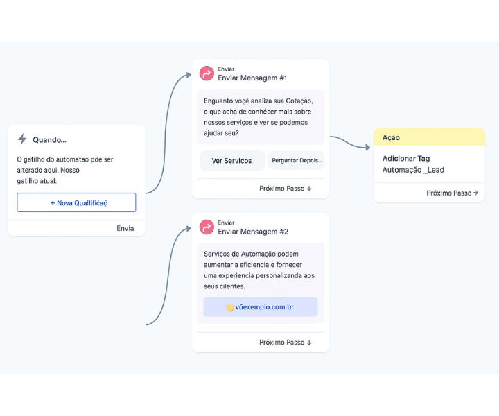 A automação é o elo que une estratégia, conteúdo e relacionamento, garantindo respostas rápidas, nutrição constante e oportunidades reais de conversão.
